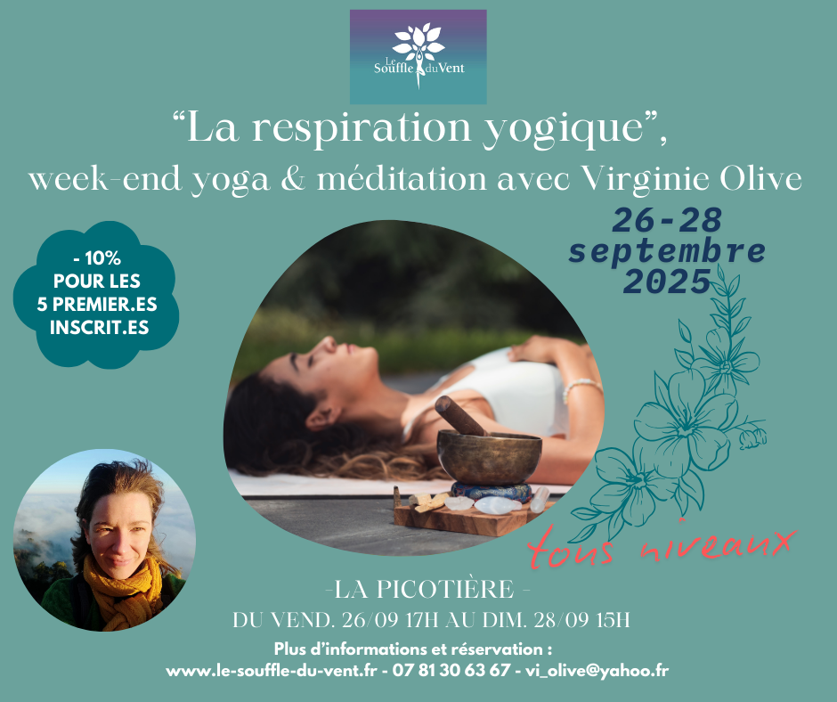 Le thème de ce week-end sera axé sur « la respiration yogique ». Ce sera l’occasion de (re)découvrir la respiration sous ses différents aspects : anatomiques, pratiques et philosophiques.